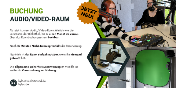 Unabhängig davon gilt weiterhin: Ist der Audio/Video-Raum nicht gebucht, kann er selbstverständlich auch spontan und ohne Reservierung genutzt werden.